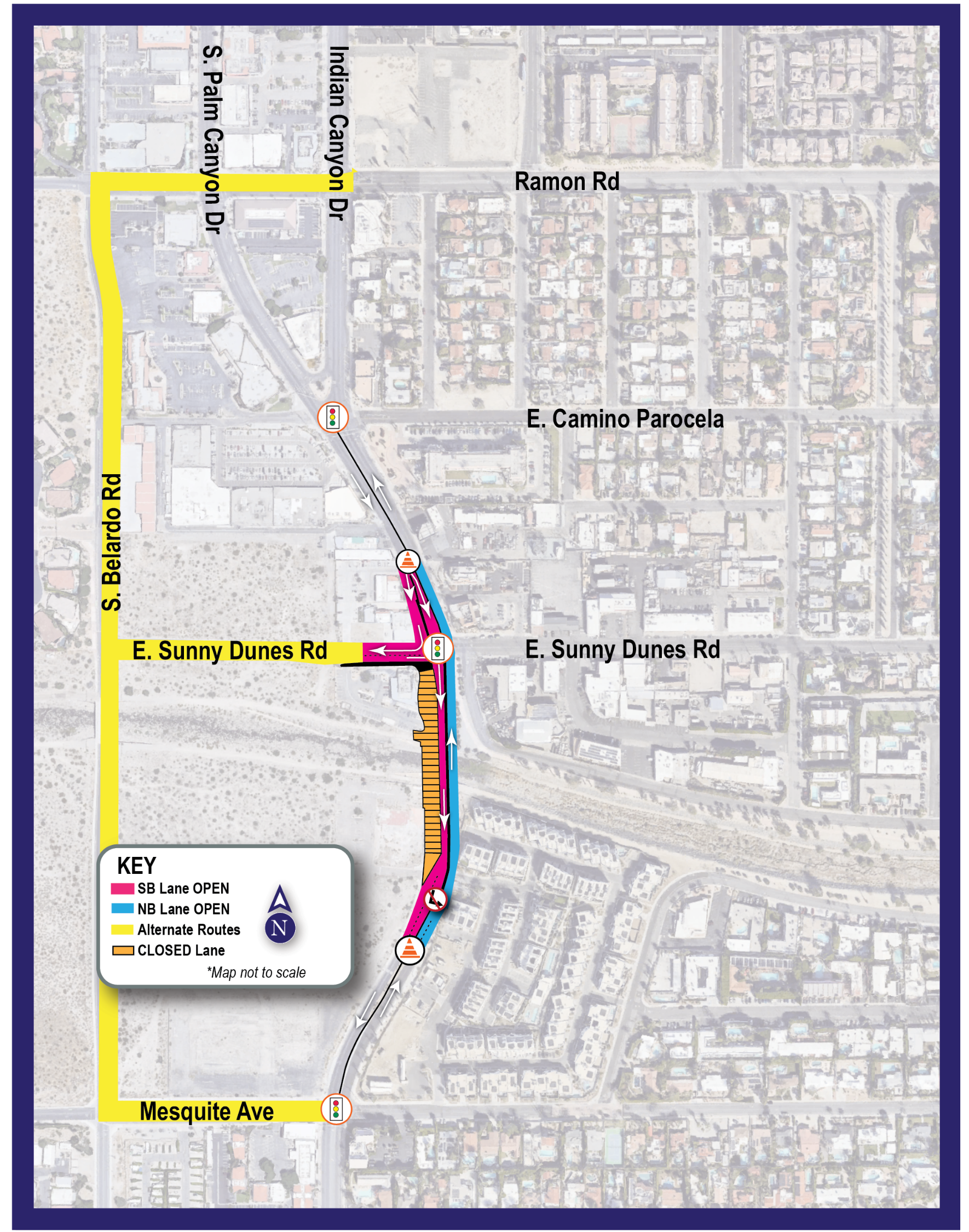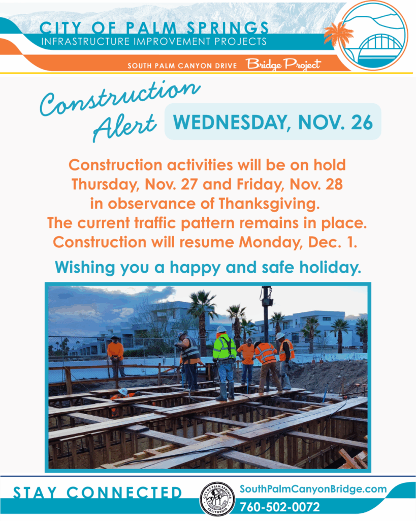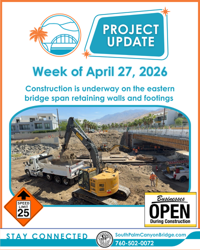 The project constructs a new, 98-foot-long bridge on S. Palm Canyon Dr. across Tahquitz Creek and reconstructs the roadway approach at both ends of the bridge to improve safety, traffic flow, and mobility connection. The new bridge includes: